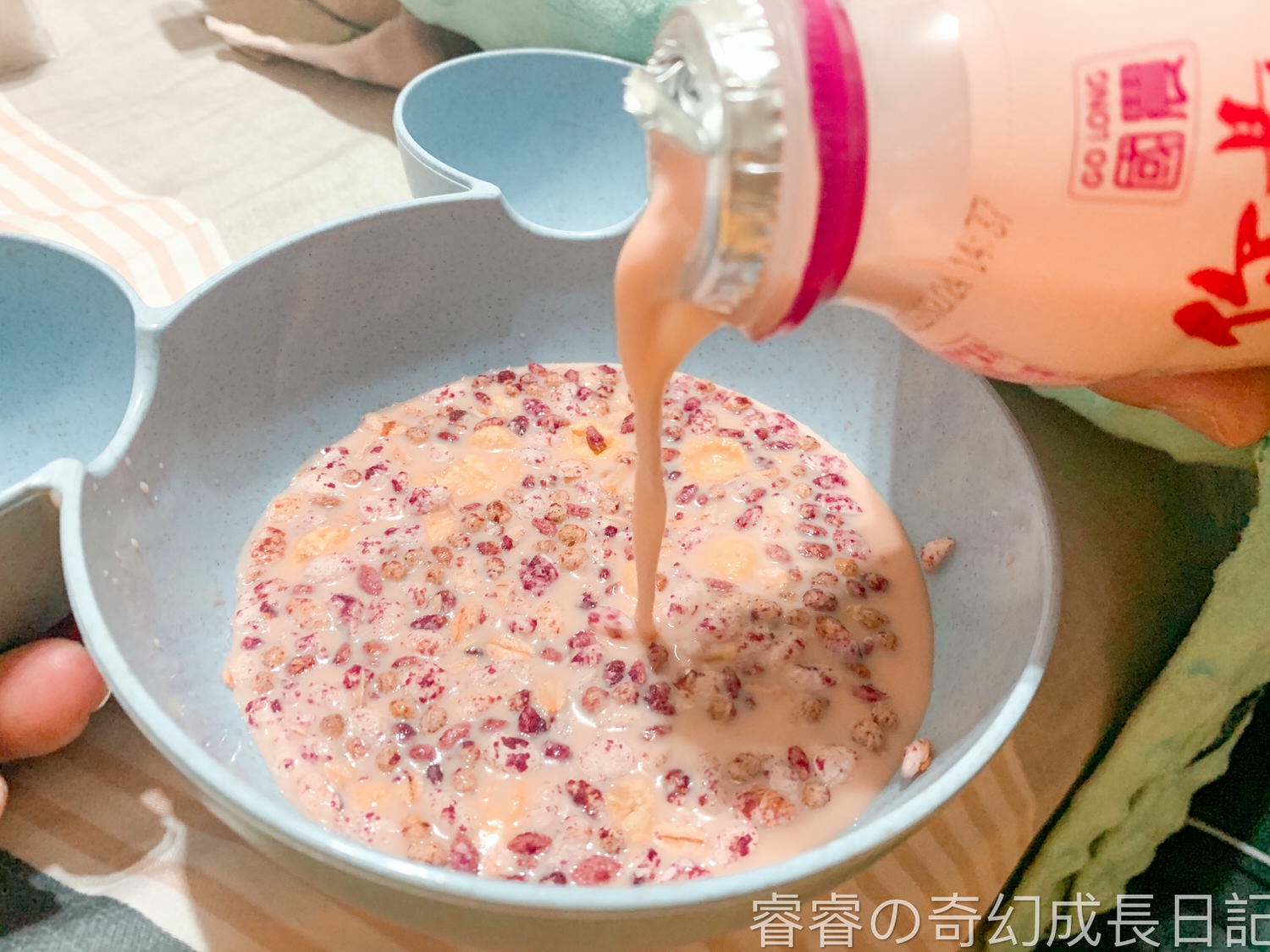 牛乳除了可以單喝以外,也可以加入最愛的麥片、水果、紅茶裡,睿睿最愛的就是加入麥片的吃法,每天下課回來都要吃上一大碗才滿足~