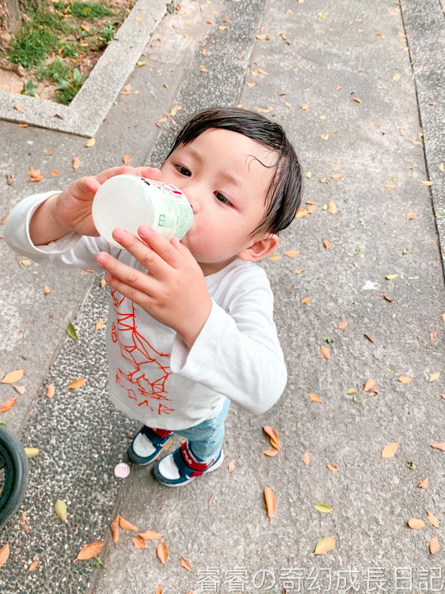 睿媽還沒拍完睿睿就搶著要喝,本來怕睿睿第一次喝會不習慣,結果他咕嚕咕嚕一下子就喝光一罐!胚芽口味甜甜的他超愛,還超可愛的比了讚♥♥♥